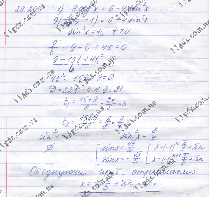 Розділ 4. Тригонометричні рівняння і нерівності » 29.20(1)