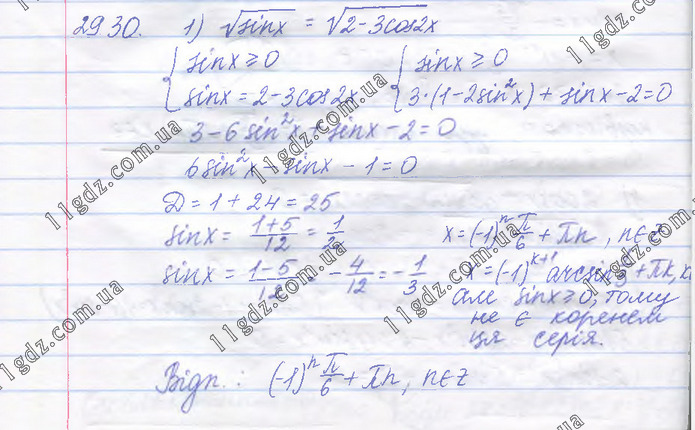 Розділ 4. Тригонометричні рівняння і нерівності » 29.30(1)
