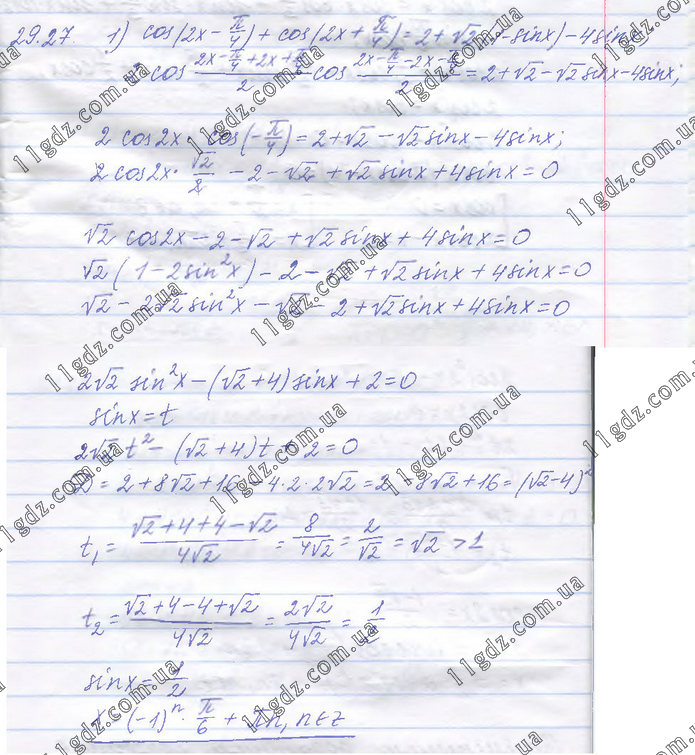 Розділ 4. Тригонометричні рівняння і нерівності » 29.27