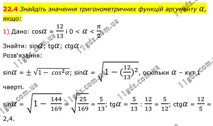 § 3. Тригонометричні функції » 22.4 (1)