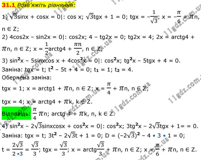§ 4. Тригонометричні рівняння і нерівності » 31.1
