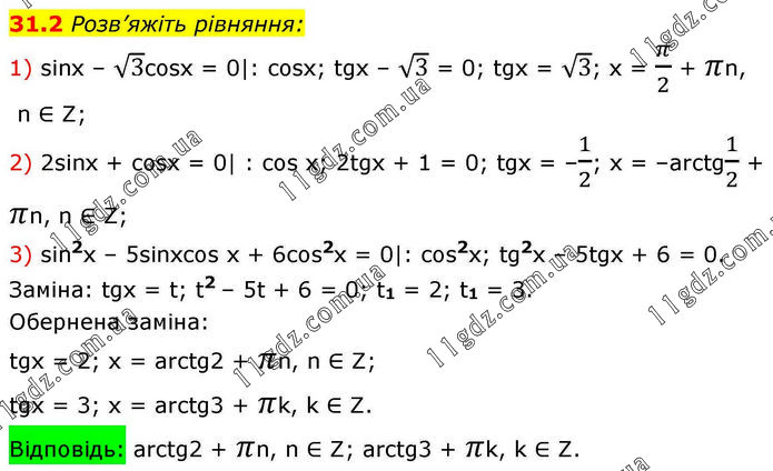 § 4. Тригонометричні рівняння і нерівності » 31.2 (1-3)