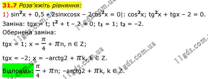 § 4. Тригонометричні рівняння і нерівності » 31.7 (1)