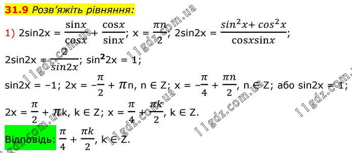 § 4. Тригонометричні рівняння і нерівності » 31.9 (1)