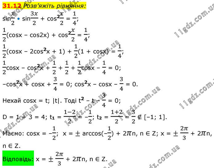 § 4. Тригонометричні рівняння і нерівності » 31.12