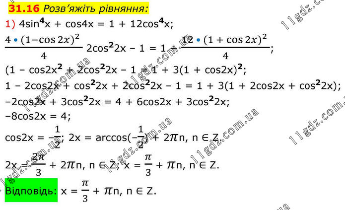 § 4. Тригонометричні рівняння і нерівності » 31.16 (1)