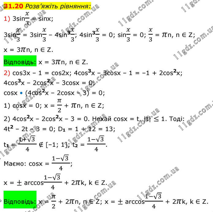 § 4. Тригонометричні рівняння і нерівності » 31.20