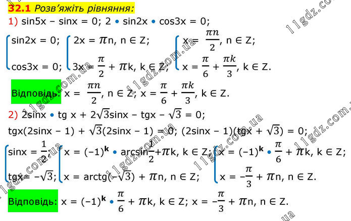 § 4. Тригонометричні рівняння і нерівності » 32.1