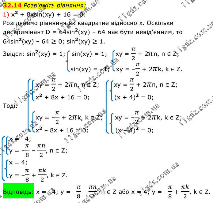 § 4. Тригонометричні рівняння і нерівності » 32.14 (1)