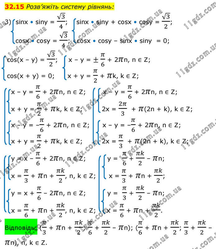 § 4. Тригонометричні рівняння і нерівності » 32.15 (3)