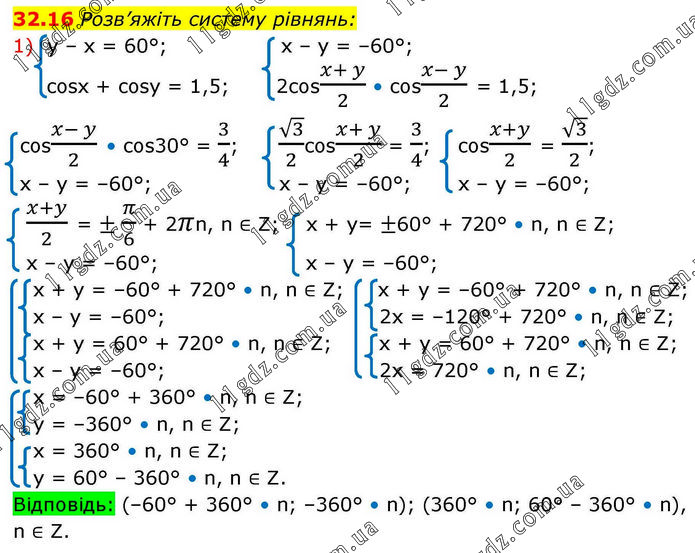§ 4. Тригонометричні рівняння і нерівності » 32.16 (1)