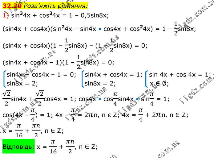 § 4. Тригонометричні рівняння і нерівності » 32.20 (1)