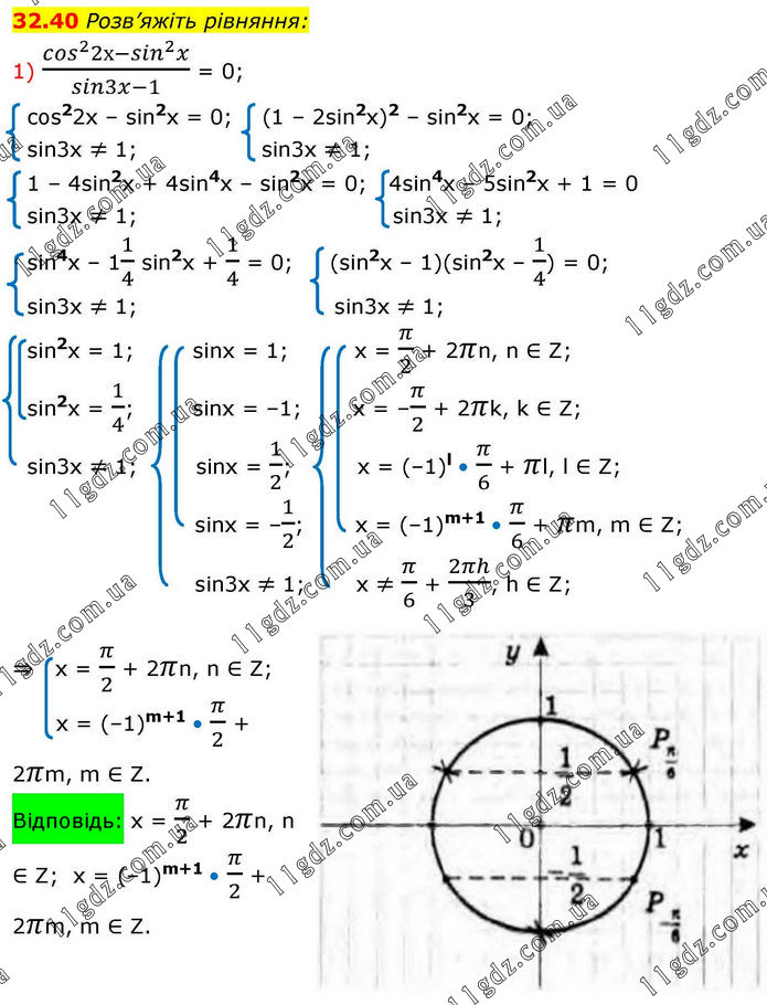 § 4. Тригонометричні рівняння і нерівності » 32.40 (1)
