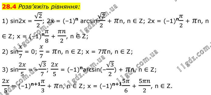 § 4. Тригонометричні рівняння і нерівності » 28.4