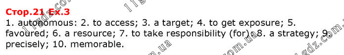 1. autonomous: 2. to access; 3. a target; 4. to get exposure; 5. favoured; 6. a resource; 7. to take responsibility (for): 8. a strategy; 9. precisely; 10. memorable.