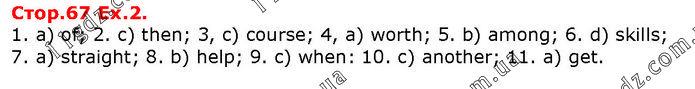 1. a) of; 2. c) then; 3, c) course; 4, a) worth; 5. b) among; 6. d) skills; 7. a) straight; 8. b) help; 9. c) when: 10. c) another; 11. a) get.