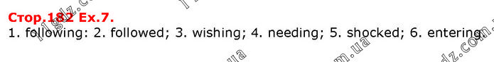 1. following: 2. followed; 3. wishing; 4. needing; 5. shocked; 6. entering.