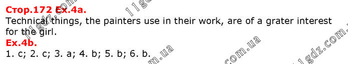 Ex.4a. Technical things, the painters use in their work, are of a grater interest for the girl. Ex.4b. 1. c; 2. c; 3. a; 4. b; 5. b; 6. b.