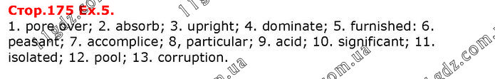 1. pore over; 2. absorb; 3. upright; 4. dominate; 5. furnished: 6. peasant; 7. accomplice; 8, particular; 9. acid; 10. significant; 11. isolated; 12. pool; 13. corruption.