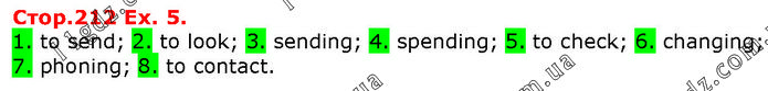 1. to send; 2. to look; 3. sending; 4. spending; 5. to check; 6. changing; 7. phoning; 8. to contact.