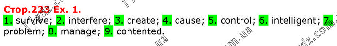 1. survive; 2. interfere; 3. create; 4. cause; 5. control; 6. intelligent; 7. problem; 8. manage; 9. contented.