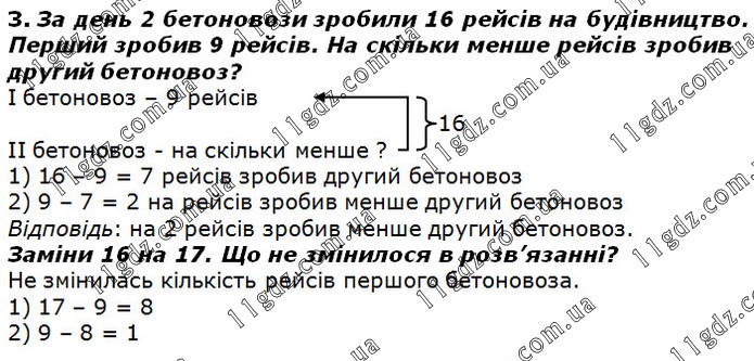 За день 2 бетоновози зробили 16 рейсів на будівництво. Перший зробив 9 рейсів. На скільки менше рейсів зробив другий бетоновоз?
