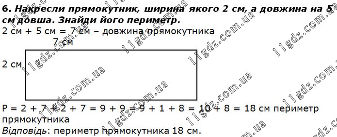 Накресли прямокутник, ширина якого 2 см, а довжина на 5 см довша. Знайди його периметр.