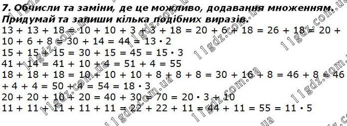 Обчисли та заміни, де це можливо, додавання множенням. Придумай та запиши кілька подібних виразів