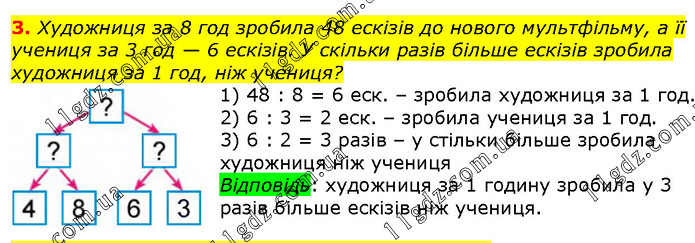 Художниця за 8 год зробила 48 ескізів до нового мультфільму, а її учениця за 3 год — 6 ескізів.