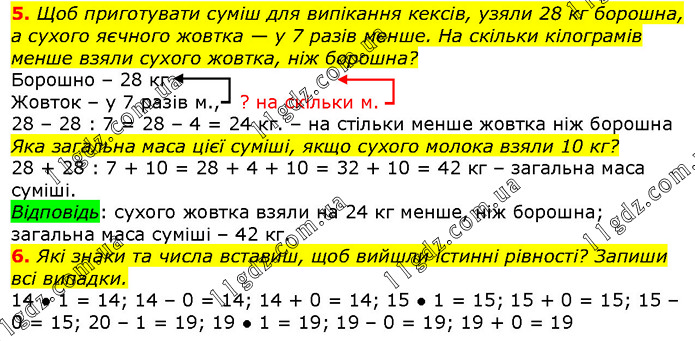Щоб приготувати суміш для випікання кексів, узяли 28 кг борошна, а сухого яєчного жовтка — у 7 разів менше . На скільки кілограмів менше взяли сухого жовтка, ніж борошна?