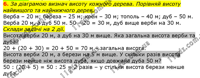 За діаграмою визнач висоту кожного дерева . Порівняй висоту найвищого та найнижчого дерев .