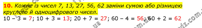 Кожне із чисел 7, 13, 27, 56, 62 заміни сумою або різницею круглого й одноцифрового чисел.