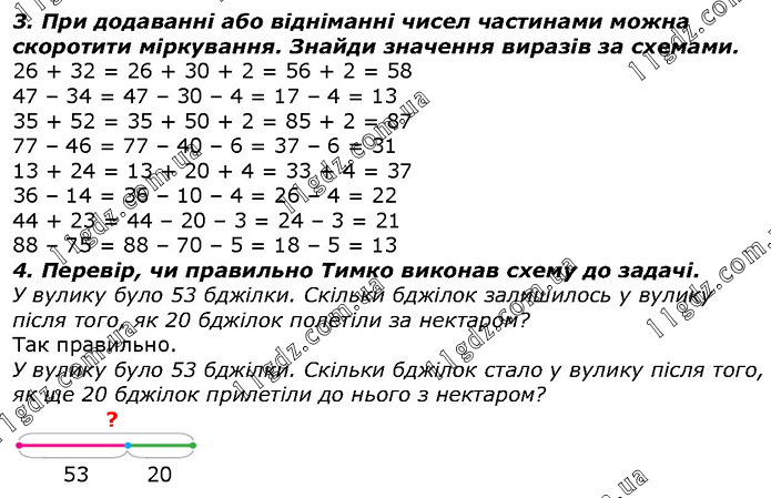 У вулику було 53 бджілки. Скільки бджілок залишилось у вулику після того, як 20 бджілок полетіли за нектаром? У вулику було 53 бджілки. Скільки бджілок стало у вулику після того, як ще 20 бджілок прилетіли до нього з нектаром?