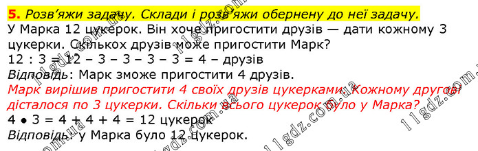 У Марка 12 цукерок. Він хоче пригостити друзів — дати кожному 3 цукерки. Скількох друзів може пригостити Марк?