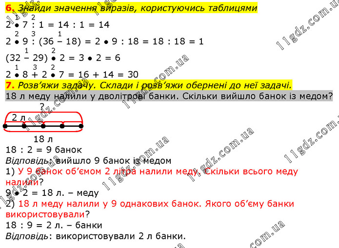 18 л меду налили у дволітрові банки. Скільки вийшло банок із медом? Склади і розв’яжи обернені до неї задачі.