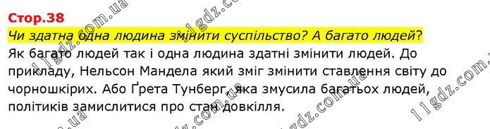 Чи здатна одна людина змінити суспільство? А багато людей? Як багато людей так і одна людина здатні змінити людей. До прикладу, Нельсон Мандела який зміг змінити ставлення світу до чорношкірих. Або Ґрета Тунберг, яка змусила багатьох людей, політиків замислитися про стан довкілля.