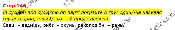 Із сусідом або сусідкою по парті пограйте в гру: один/-на називає групу тварин, інший/-ша — її представників. Савці – ведмідь, риби – окунь, ракоподібні – раки.
