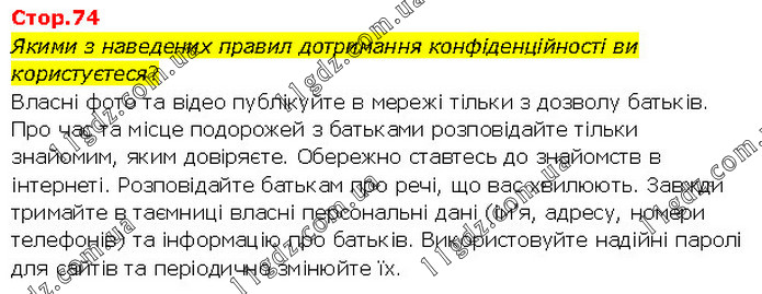 Якими з наведених правил дотримання конфіденційності ви користуєтеся? Власні фото та відео публікуйте в мережі тільки з дозволу батьків. Про час та місце подорожей з батьками розповідайте тільки знайомим, яким довіряєте. Обережно ставтесь до знайомств в інтернеті. Розповідайте батькам про речі, що вас хвилюють. Завжди тримайте в таємниці власні персональні дані (ім’я, адресу, номери телефонів) та інформацію про батьків. Використовуйте надійні паролі для сайтів та періодично змінюйте їх.
