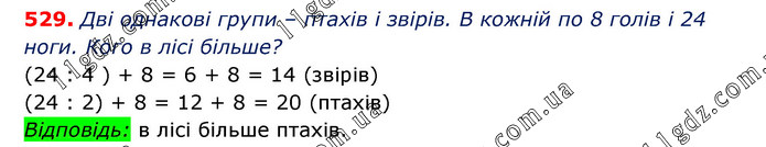 Птахи та звірі посперечалися, кого в лісі живе більше. Щоб перевірити це, вони поділилися на дві однакові групи. У кожній групі виявилося по 8 голів і 24 ноги (лапи). Визнач, кого в лісі було більше — звірів чи птахів.