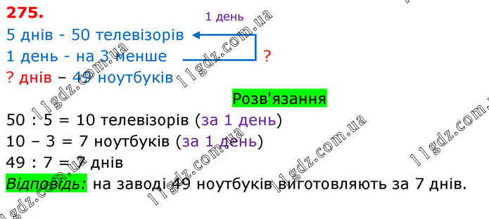 За 5 днів на заводі виготовили 50 телевізорів. Ноутбуків виготовляють за день на 3 менше, ніж телевізорів. За скільки днів на заводі виготовлять 49 ноутбуків?
