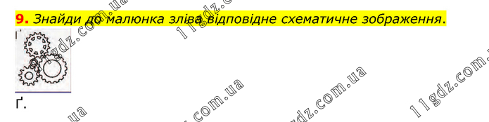 Знайди до малюнка зліва відповідне схематичне зображення. Ґ.