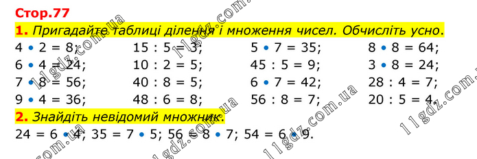 Розділ 5. Усне множення і ділення » Стр.77 (1-2)
