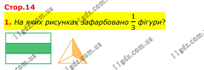 На яких рисунках зафарбовано 1/3 фігури?