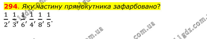 Яку частину прямокутника зафарбовано? 1/2, 1/3, 1/6, 1/4, 1/8, 1/5.