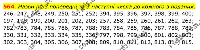Назви по 3 попередні та 3 наступні числа до кожного з поданих. 246, 247, 248, 249, 250, 251, 252; 394, 395, 396, 397, 398, 399, 400; 197, 198, 199, 200, 201, 202, 203; 257, 258, 259, 260, 261, 262, 263; 782, 783, 784, 785, 786, 787, 788; 783, 784, 785, 786, 787, 788, 789; 330, 331, 332, 333, 334, 335, 336; 797, 798, 799, 800, 801, 802, 803; 302, 303, 304, 305, 306, 307, 308; 809, 810, 811, 812, 813, 814, 815.