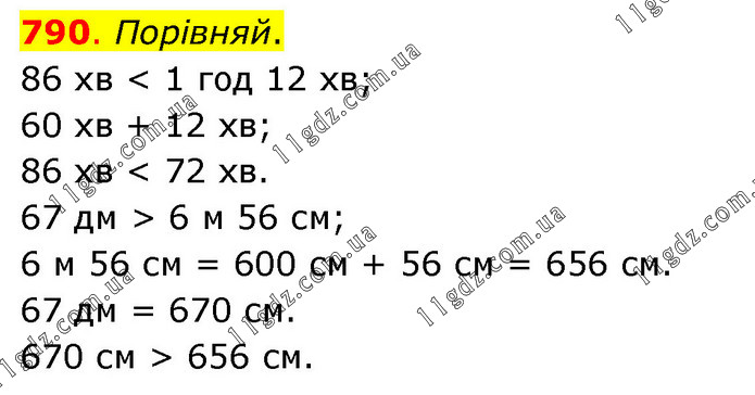 Порівняй. 86 хв < 1 год 12 хв; 60 хв + 12 хв; 86 хв < 72 хв. 67 дм > 6 м 56 см; 6 м 56 см = 600 см + 56 см = 656 см. 67 дм = 670 см. 670 см > 656 см.