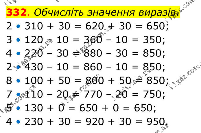 2. Множення та ділення двоцифрових чисел » 332