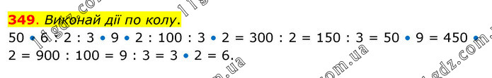 Виконай дії по колу. 50 • 6 : 2 : 3 • 9 • 2 : 100 : 3 • 2 = 300 : 2 = 150 : 3 = 50 • 9 = 450 • 2 = 900 : 100 = 9 : 3 = 3 • 2 = 6.
