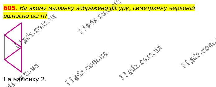 На якому малюнку зображено фігуру, симетричну червоній відносно осі n?