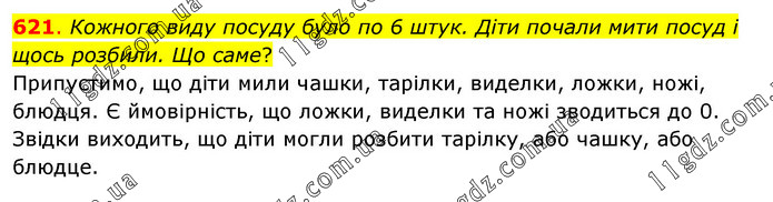 Кожного виду посуду було по 6 штук. Діти почали мити посуд і щось розбили. Що саме? Припустимо, що діти мили чашки, тарілки, виделки, ложки, ножі, блюдця. Є ймовірність, що ложки, виделки та ножі зводиться до 0. Звідки виходить, що діти могли розбити тарілку, або чашку, або блюдце.